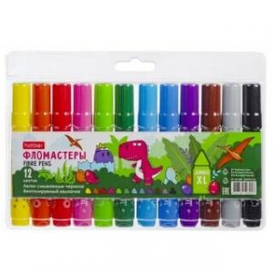 Фломастеры 12 цв. JUMBO-XL утолщен. корпус Диносад