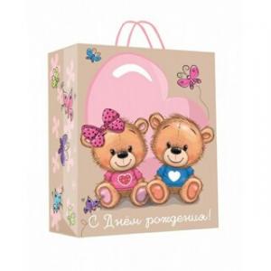 Пакет подарочн. крафт 26х32х14 см С Днем Рождения Мишки 390076